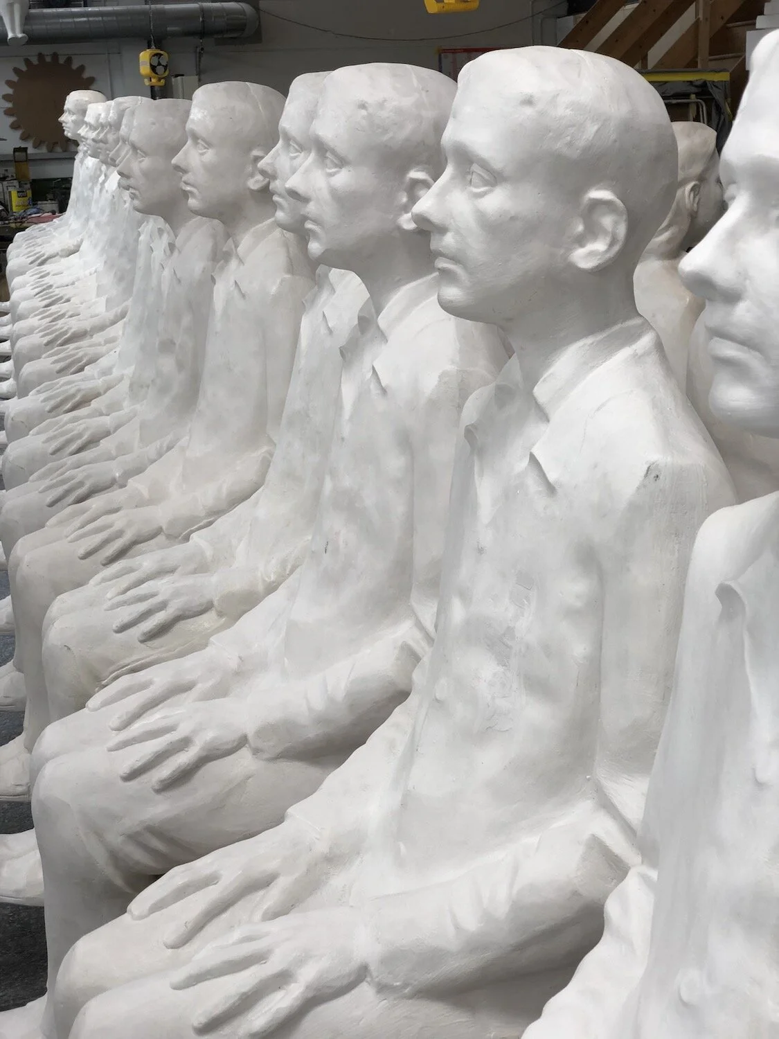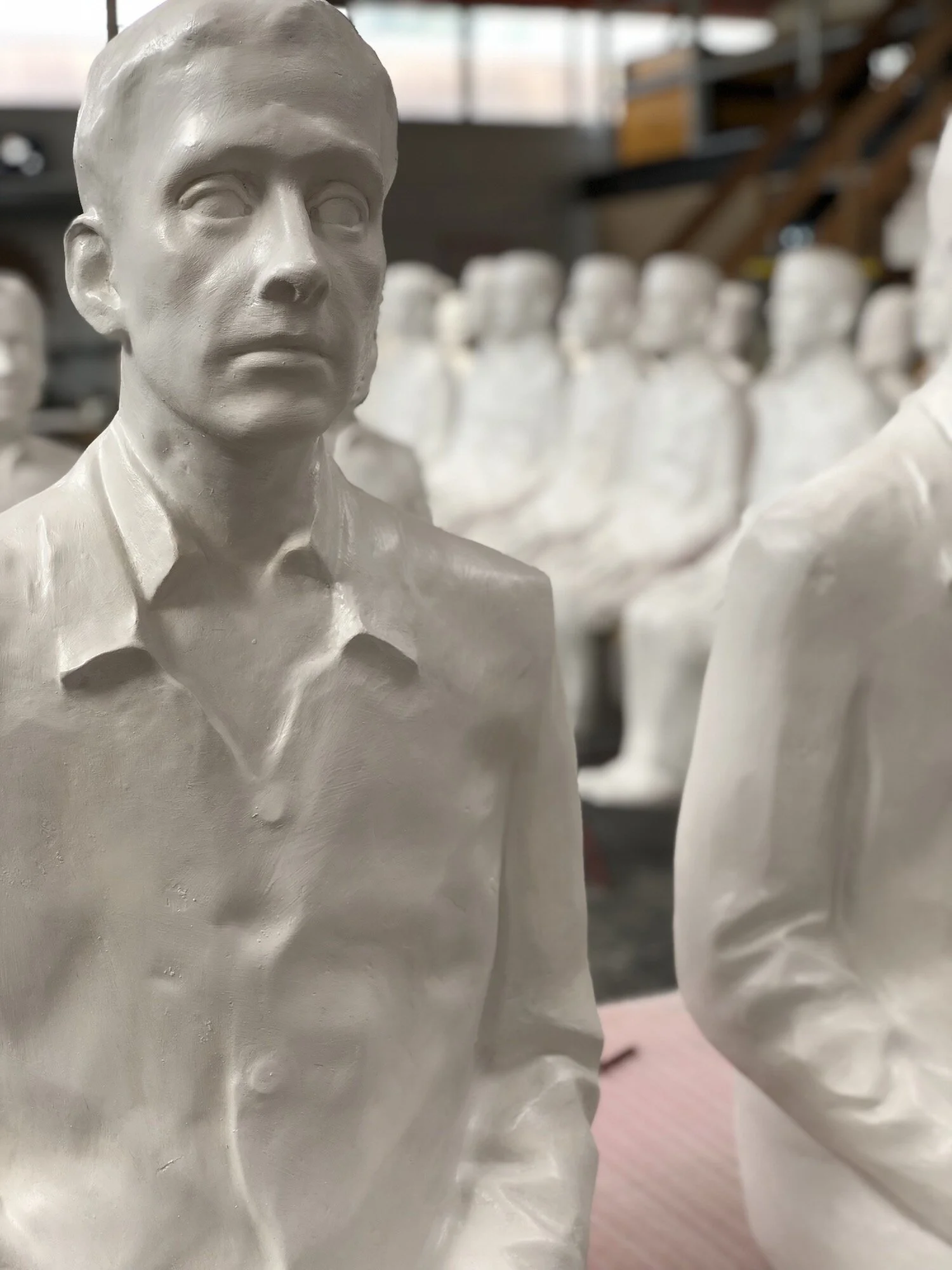 We fabricated 46 effigies, 23 men and 23 women, for Opera North’s production of ‘A Greek Passion’ (click on image to expand):