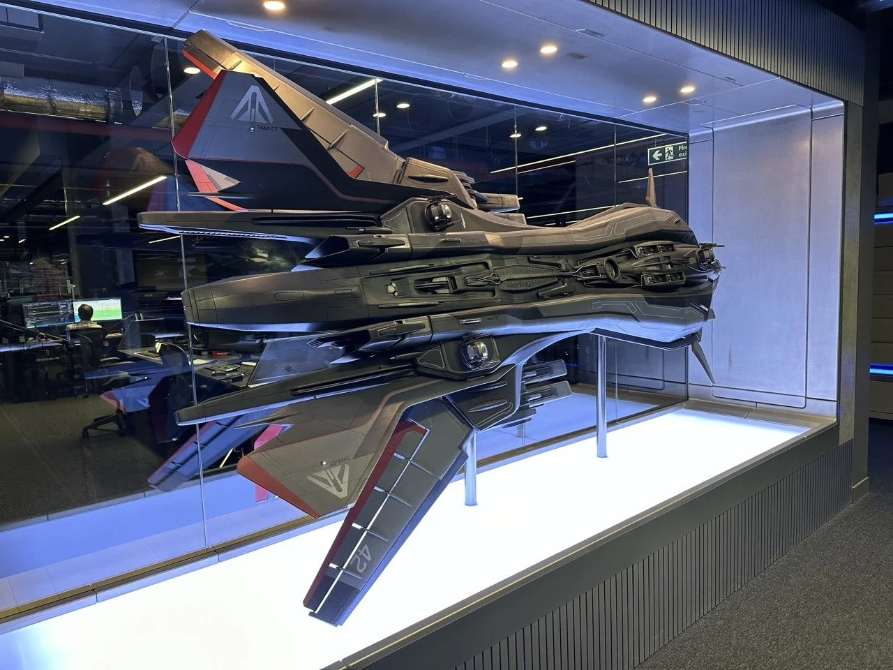 Below is a model of a ‘Gladius’ spacecraft built by Mangostone and installed in another bespoke enclosure at Cloud Imperium Games HQ. Click on image to expand.